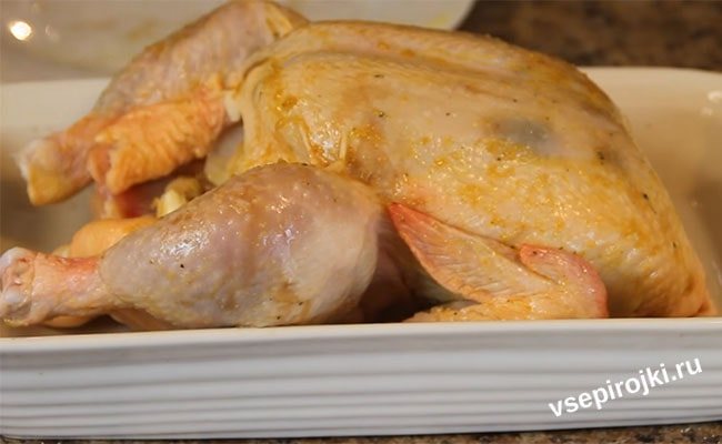 - Натереть получившейся смесью тушку и оставить в холоде на 4 часа.