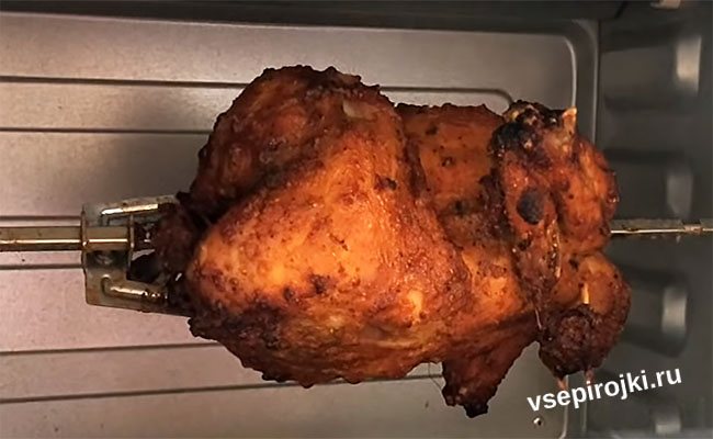 Когда курица станет золотистой, а сок, вытекающий при протыкании ножом или вилкой – прозрачным, значит блюдо готово.