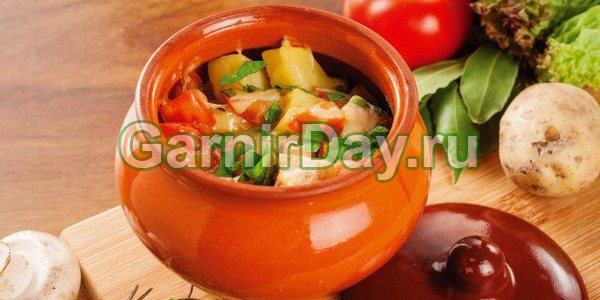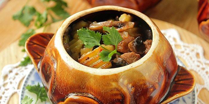 Рецепт приготування м’яса з картоплею та грибами у горщику в духовці