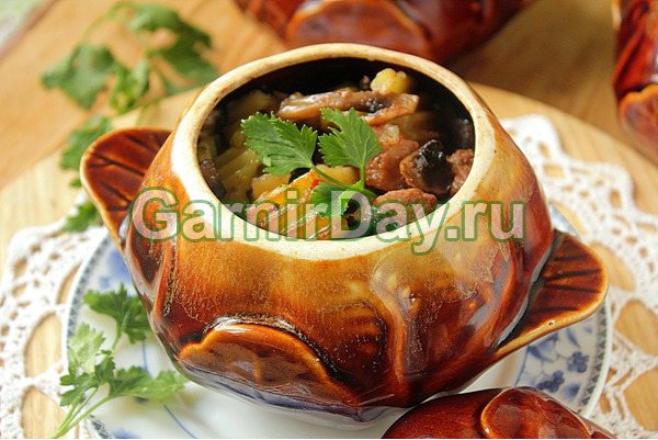 Абсолютно всі страви, приготовані з використанням горщиків, виходять смачними і дуже соковитими. Сьогодні представляємо рецепт, до якого входять гриби, вони додадуть страві неповторного смаку і аромату.