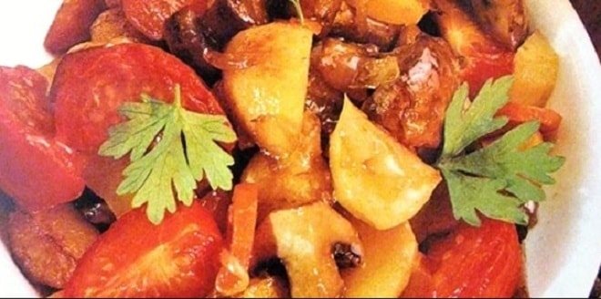 Тушкована картопля з овочами відмінно доповнить м’ясне асорті та рибні закуски.