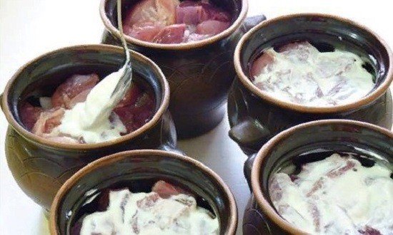 • М’ясо найкраще маринувати – так воно вийде соковитим та ніжним. Таке м’ясо – секрет найсмачнішого рецепту картоплі у горщиках.