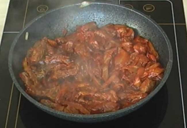 - Если вся жидкость выкипела, можно добавить еще томатной пасты.