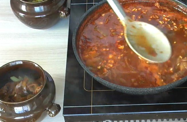 Горшочек — посуда глиняная, поэтому обычно должен нагреваться постепенно, вместе с духовкой. Помещение холодного горшка сразу в жар может привести к гибели посуды и блюда. Однако, мы предварительно подогрели все продукты, поэтому с нагретым горшочком в горячей духовке ничего страшного не случится. Большого перепада температур не будет.