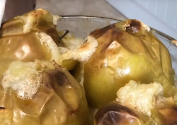 1. У вимитих цілих яблуках зробити кілька проколів і відправити запікатися в духовку за температури 180 градусів на 20 хвилин.