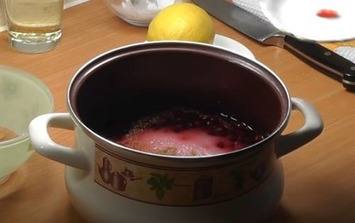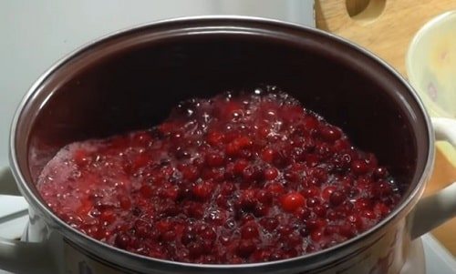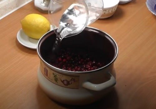 1. Влийте в каструлю воду, закиньте брусницю, дайте закипіти.
