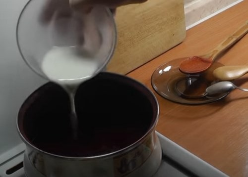 5. Розведіть крохмаль водою, влийте тонким струменем у каструлю. Проваріть ще кілька хвилин, потім вимкніть плиту.