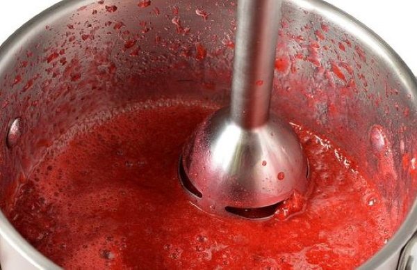 Вимкніть конфорку. Пробийте масу блендером, перетворивши на однорідне пюре. Якщо любите, щоб у соусі траплялися шматочки ягід, дійте не дуже старанно.