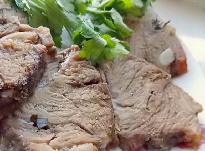 - Залишити свинячу шию, загорнуту у фольгу, у духовці до моменту подачі на стіл, щоб вона настояла. Нарізати скибочками буженину, можна прикрасити зеленню.