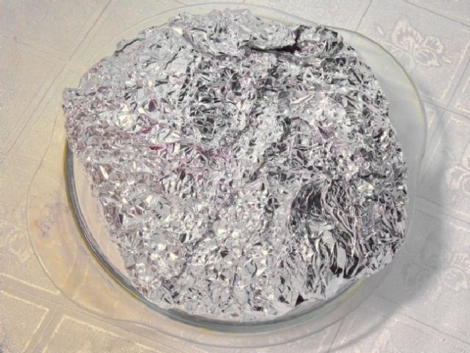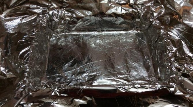 - На деку розстелити один або кілька шарів фольги, залишити по краях запас, щоб можна було потім повністю загорнути шматок м’яса.