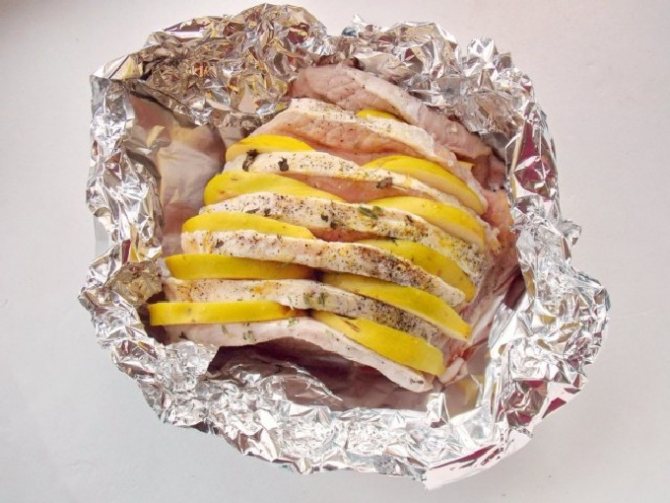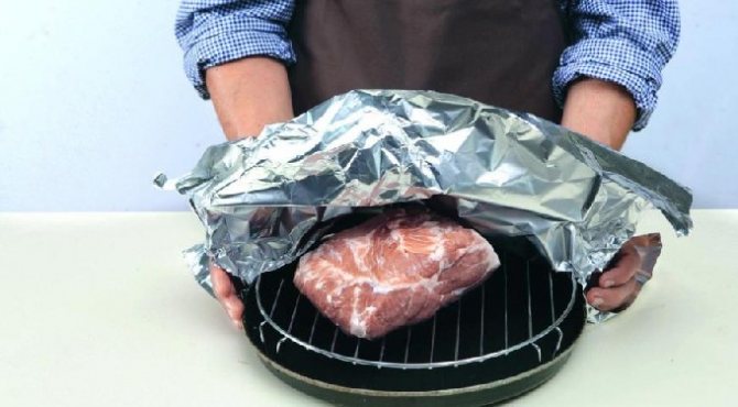 - Загорнути свинину у фольгу максимально герметично. Матова сторона фольги має бути звернена всередину, блискуча – назовні.