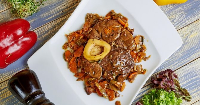Оссобуко – це традиційна італійська страва, яка заслужила визнання по всьому світу нарівні з піцою і пастою. Багато господарок вважають, що готувати його складно. Ви переконаєтесь, що це не так. Оссобуко – це приготована за особливою технологією гомілка теля. Важливу роль у рецепті грає гремолата – приправа, до складу якої входять часник, цедра лимона та зелень петрушки. Вона викладається на готове м’ясо. Цілком страва подається зазвичай з різотто, але не менш хороший стейк і до пасти. Зверніть увагу, що в стейку має бути кісточка – вона робить бульйон наваристим і…