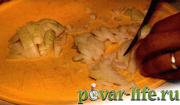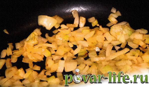Обсмажую до золотистого кольору в сковороді на невеликій кількості олії. Додавання обсмаженої цибулі значно посилює смакові якості цієї страви.