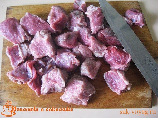 - М’ясо потрібно нарізати великими шматками вагою приблизно 150-200 г.