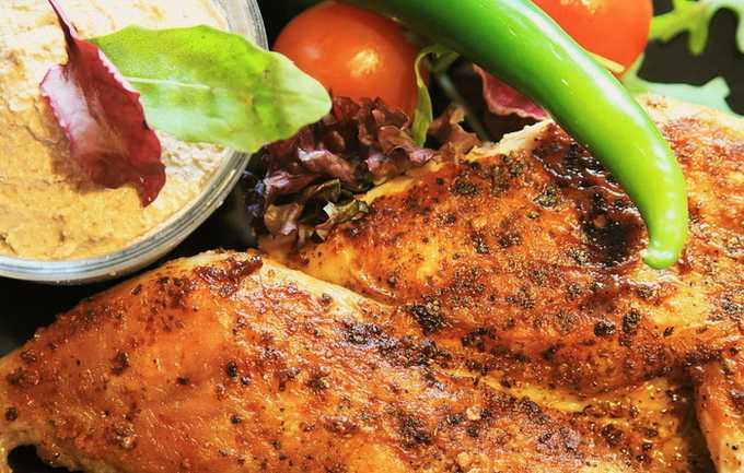 Жарим в разогретом подсолнечном масле под прессом, сначала с одной, потом с другой стороны. Подаём к столу, приятного аппетита!