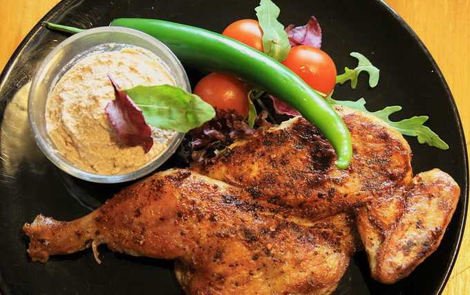 Цыпленок табака – традиционное грузинское блюдо, ставшее популярным и любимым не только на территории Кавказа, но и в наших условиях. Нежная птица, доведенная до румяной корочки под прессом, не похожа на просто жаренную курицу. Во-первых, рецепт цыпленок табака включает обилие специй. Во-вторых, сам процесс жарки под гнетом отличается от обычного приготовления на сковороде: поверхность курицы максимально равномерно и плотно прилегает ко дну, благодаря чему быстро румянится и сохраняет сочность мякоти. Финальный штрих – подача соуса из грецких орехов, столь типичного для грузинской кухни. Он придает цыпленку табака особое вкусовое звучание.