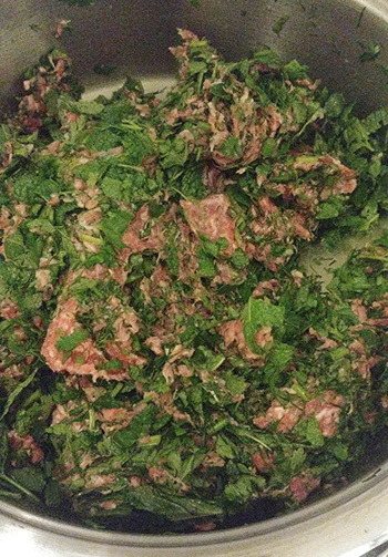 - Додайте|добавляйте| зелень до фаршу з баранини і перемішайте.