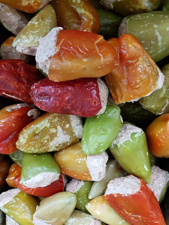 - Перець для фарширування чищу та нанизую один на одного. І місця менше займає й узимку вітаміни. Витяг, швидко нафарширував і обід готовий.