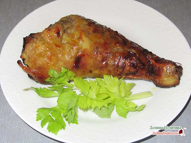 Розігріваємо духовку до 200 градусів. Відправляємо гомілки запікатись, зменшуємо температуру до 180 градусів. Випікаємо півгодини.
