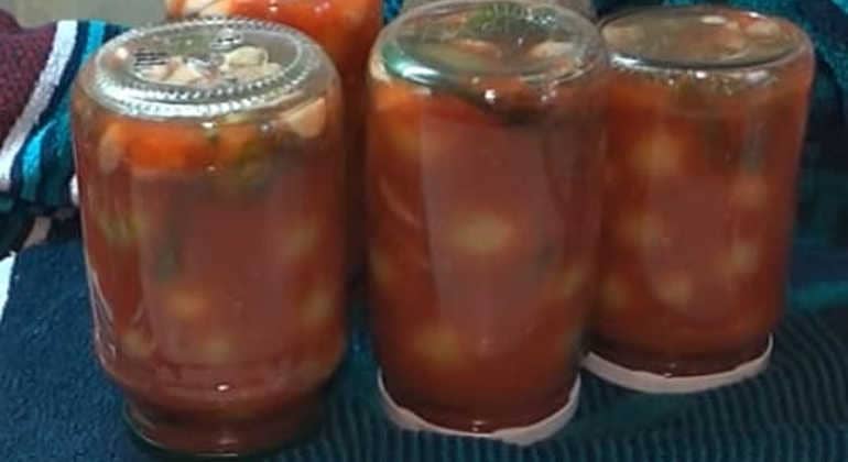 - Залити гарячим томатним соком.