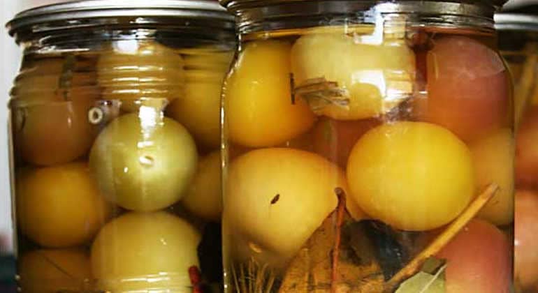 Сюди ж за бажанням додають смородинові листки, м’яту, гілочки селери або волоті петрушки для більш насиченого пряного аромату (не більше 50 гр. приправ на 1 кг плодів).