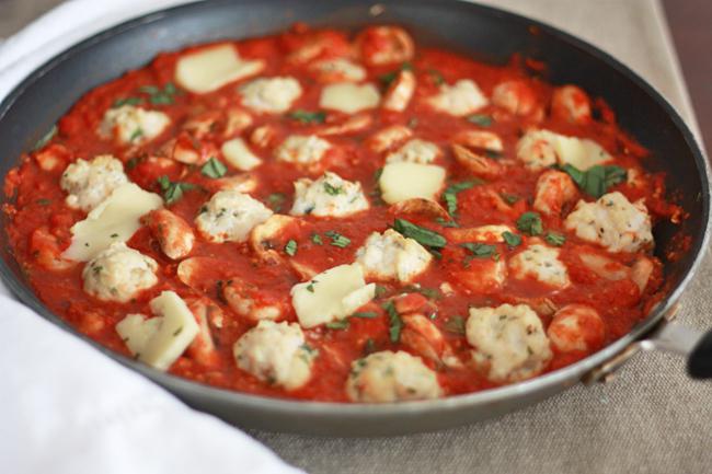 Готовий фарш поділяють на невеликі частини і скочують у кульки рівного розміру діаметром приблизно два сантиметри. Фрикадельки обвалюють у борошні і обсмажують на сковорідці до зарум’янювання. Окремо готують соус. Для його приготування використовують томатну пасту, свіжі томати, вершки, цибулю, зелень. Потім фрикадельки викладають на лист, заливають приготованим соусом і запікають у духовці.