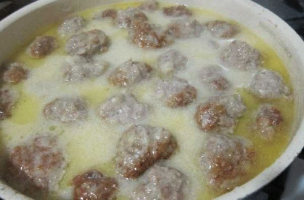 - У киплячу підливу викладають заздалегідь підготовлені м’ясні фрикадельки. Викладати потрібно невеликими порціями, поступово розподіляючи їх по підливі, зменшувати вогонь до рівномірного. Страву потрібно гасити не менше 25 хвилин.
