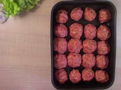 6. З фаршу сформуйте круглі фрикадельки і розмістіть їх у жароміцній формі.