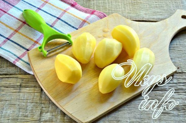 Картоплю промити під водою та очистити від шкірки. Після цього знову ретельно помити під проточною .