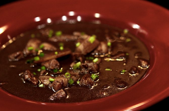 Унікальна страва зі свинячої крові та ніг, а також сочевиці та спецій. Друга назва страви – чорна кров’яна юшка. Оригінальний рецепт супу не зберігся, але подібні юшки готують і в інших країнах, наприклад, Кореї, Іспанії, Німеччині, Литві та Польщі.