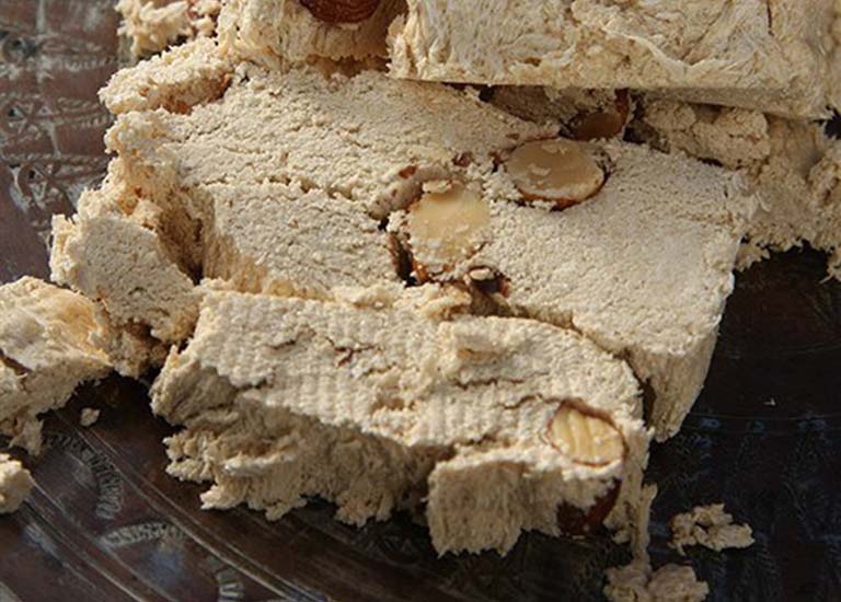 Халва подається по всьому Близькому Сході. Халва може вилікувати вашу потяг до солодкого. Манна крупа, мигдаль, кориця, на смак набагато краща, ніж здається.