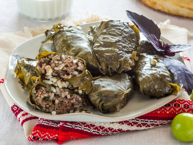 Це аналог голубців, тільки для закручування використовується молоде виноградне листя. Греки готують долму з м’ясним фаршем та рисом, приправляючи лимонним соком та оливковою олією. Готується страва шляхом гасіння.