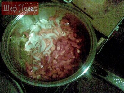 - Слід продовжити теплову обробку протягом 3-х хв., внести кетчуп, ½ ст. води та гасити ще 5 хв. Готову підливу потрібно відставити убік.