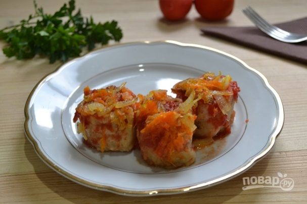 - Отримані напівфабрикати необхідно залити томатною підливою. Готувати у закритому вигляді на повільному вогні ще 30 хв.