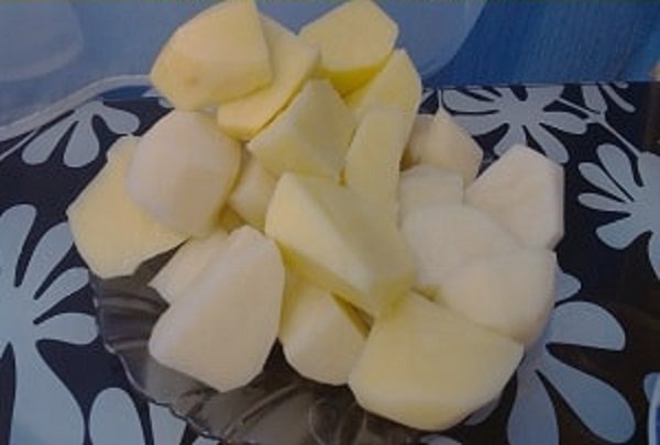 3. Картоплю очищаємо, промиваємо та нарізаємо великими шматками.
