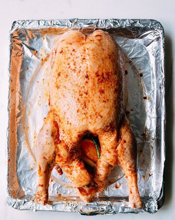 Якщо м’ясо підгорятиме зверху, то накрийте птицю фольгою, а якщо знизу, то додайте в піддон води.
