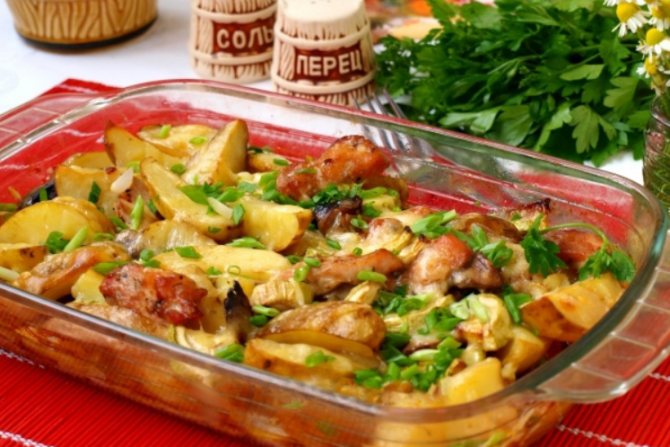 Запеканка из индейки и грибов с чесноком