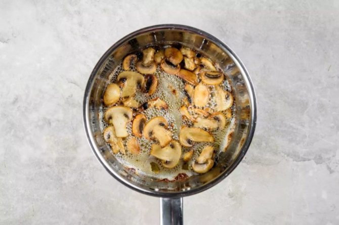 Добавить грибы и варить до коричневого цвета.