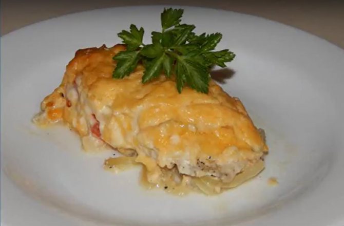 Мясо по-французски с помидорами и сыром в духовке