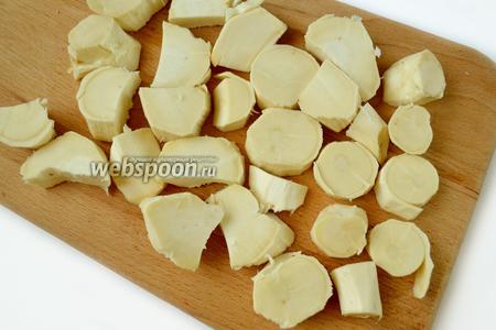 - Нарежьте корень кубиками с ребром 1—1,5 см.