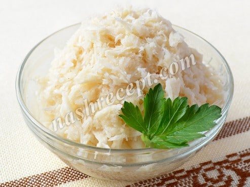 - Если вы не любите острые закуски, сделайте хрен со сметаной или яблоками.