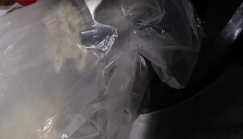 - Если используете для готовки мясорубку, надевайте на нее полиэтиленовый мешок, куда будет выходить перетертая масса.