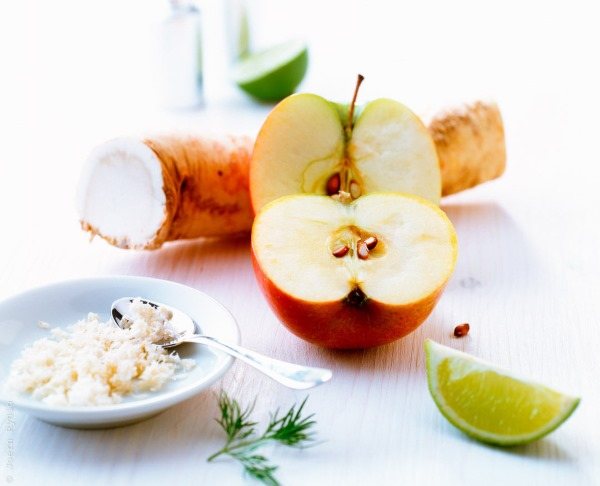 - Тёртый хрен иногда смешивают с лимонным соком и тёртым яблоком и используют в качестве заправки или закуски.
