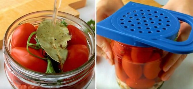 Если Вы закрываете томаты черри или другие сорта с тонкой кожицей, то держите их в горячей воде 10-15 минут.