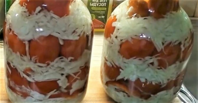 Вот мы и добрались до оригинального рецепта зимней заготовки. Помидоры будем закрывать с капустой, которая в маринованном виде тоже получается очень вкусной и хрустящей, с приятной кислинкой.
