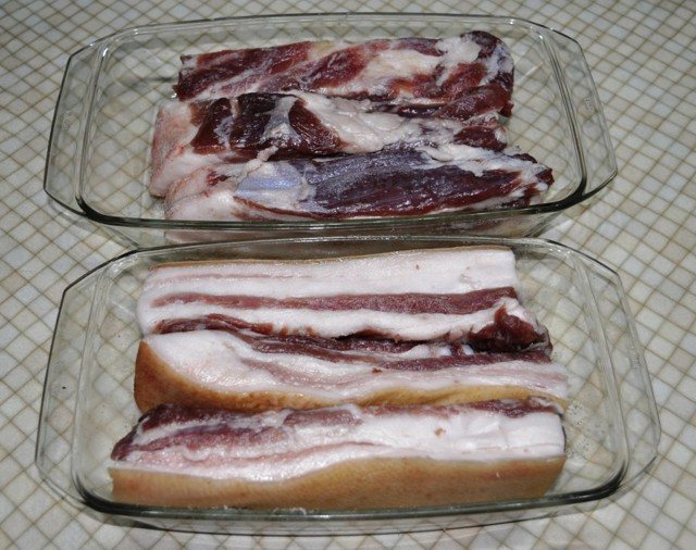 1. Бекон – 1 кг (це грудинка з м’ясом та жиром).