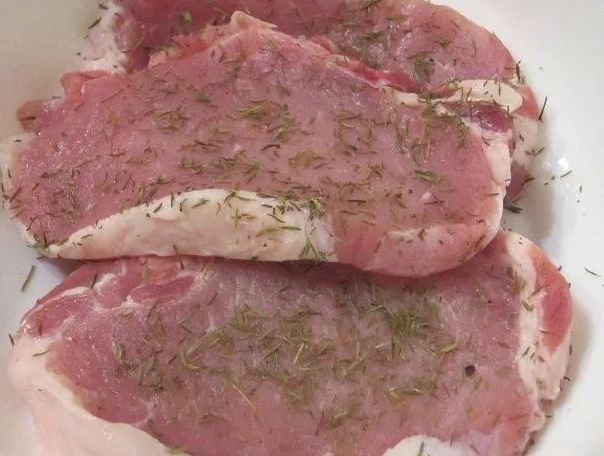 4. Додати чебрець (сушений або свіжий) і замаринувати цим складом свинячі котлети з кісточкою. Залишити в холодному місці на кілька годин, а краще на ніч.