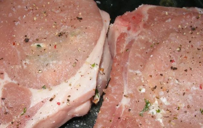 1. Смажити краще свіже чи охолоджене м’ясо. Заморожений шматок слід заздалегідь потримати на ніч на нижній полиці холодильника. Карбонат дістати, укласти на тарілку і дати зігрітися до кімнатної температури 20 хвилин.