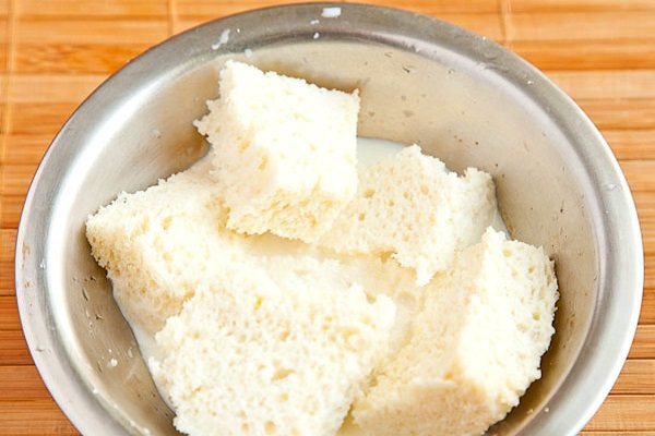 - Викладаємо на стіл все, з чого готуватимуться котлети з кролика. Що далі? Нам потрібно розмочити хліб у звичайній воді.