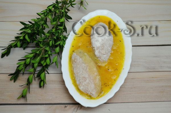 4. Вмочити заготовки в підсолену суміш із яєць та молока. Потім обваляти в панірувальних сухарях. Повторити процес двічі.